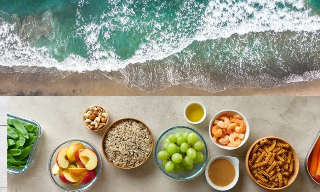 Οι στιγμές στην παραλία συχνά συνοδεύονται από πείνα και εύκολες επιλογές όπως παγωτά, κρουασάν ή σάντουιτς τύπου fast food. Όμως, με λίγη προετοιμασία μπορείς να έχεις μαζί σου εναλλακτικές που θα σε κρατήσουν χορτάτο και υγιή: φρέσκα φρούτα (π.χ. κεράσια, ροδάκινα, καρπούζι), λαχανικά σε μπαστουνάκια (αγγούρι, καρότο), ανάλατους ξηρούς καρπούς ή ένα σπιτικό τοστ με ψωμί ολικής, τυρί χαμηλών λιπαρών και ντομάτα-μαρούλι. Ένα γιαούρτι με λίγα λιπαρά σε φορητό ψυγειάκι μπορεί επίσης να είναι μια εξαιρετική επιλογή.